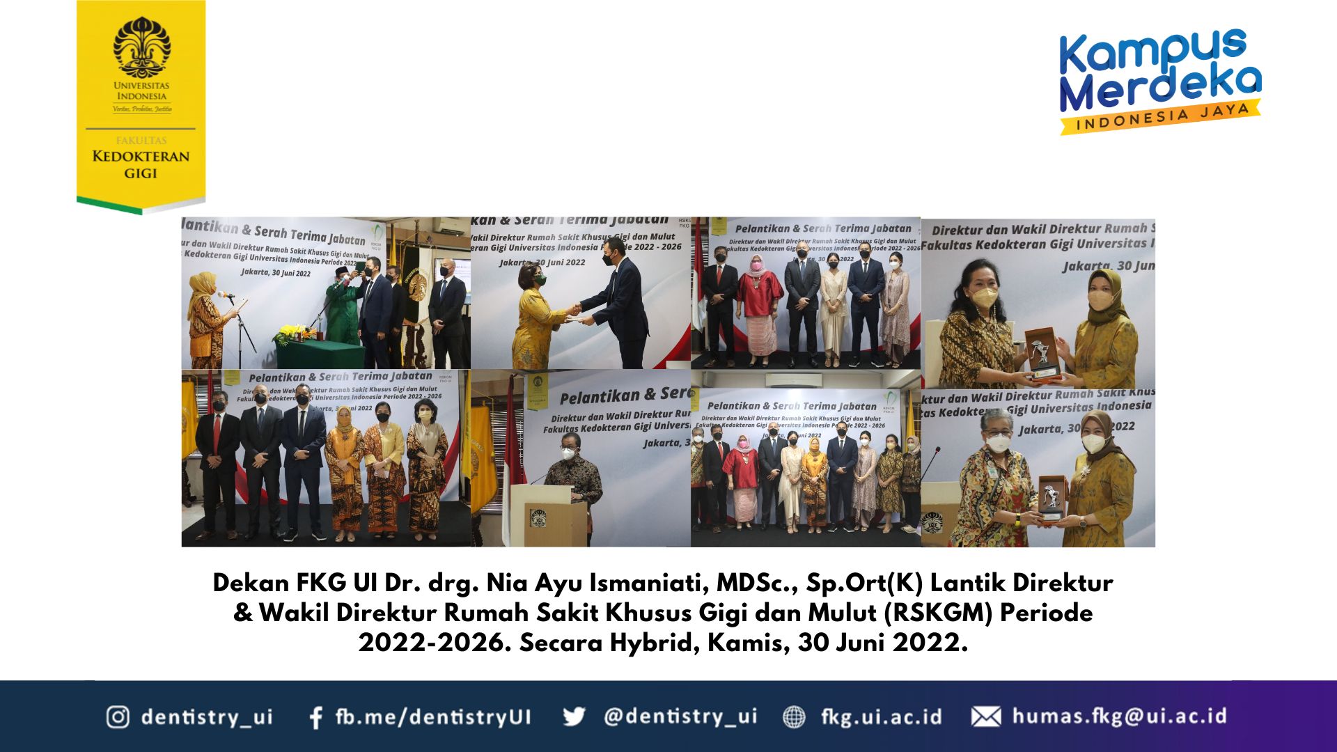 Rumah Sakit Khusus Gigi & Mulut Fakultas Kedokteran Gigi Universitas Indonesia miliki nahkoda baru yaitu Direktur & Wakil Direktur Periode 2022-2026.Rumah Sakit Khusus Gigi & Mulut Fakultas Kedokteran Gigi Universitas Indonesia miliki nahkoda baru yang akan memimpin pada Periode 2022-2026. Pimpinan RSKGM yang baru yaitu drg. Yudy Ardilla Utomo, Sp.BM(K) sebagai Direktur serta drg. R.M....Read More