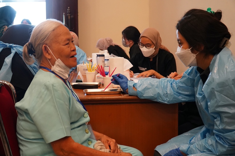 Ketua pelaksana kegiatan, Prof. Dr. drg. Lindawati S. Kusdhany, Sp.Pros(K), menyampaikan, “Kegiatan ini diharapkan dapat bermanfaat dalam penapisan status kerentaan mulut serta identifikasi dini terhadap risiko kerentaan dan gangguan fungsi mulut pada lansia. Ia menekankan bahwa kerentaan mulut berkontribusi terhadap terjadinya sarkopenia. Oleh karena itu, program OPA-OMA diharapkan mampu meningkatkan kesadaran, deteksi dini, serta memberikan perawatan yang lebih baik bagi lansia dalam menjaga massa ototnya. Kesehatan mulut yang optimal juga diharapkan dapat mencegah dampak lanjutan terhadap kualitas hidup para lansia.”