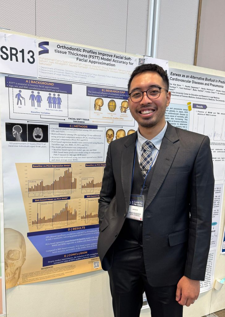 Dalam presentasinya, drg. Garry yang saat ini sedang menempuh studi doktoral di Departemen Kedokteran Gigi Forensik, Institute of Science Tokyo membawakan penelitian berjudul “Orthodontic Profiles Improve Facial Soft-Tissue Thickness Model Accuracy for Facial Approximation”, yang menawarkan pendekatan baru untuk meningkatkan akurasi prediksi ketebalan jaringan lunak wajah (Facial Soft Tissue Thickness/FSTT), komponen penting dalam proses rekonstruksi wajah forensik. Dengan mengintegrasikan profil ortodontik seperti Skeletal Class, Cephalic Index, Tweed, dan Northwestern, model yang dikembangkan menunjukkan potensi besar dalam memajukan ilmu kedokteran gigi forensik.