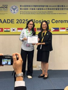 Selain para pemenang, Prof. drg. Lisa Rinanda Amir, Ph.D., PBO turut hadir pada upacara penutupan SEAADE 2025 mendampingi mahasiswa. Kehadiran beliau menegaskan komitmen fakultas dalam memperkuat jejaring akademik internasional dan mendukung pengembangan pendidikan kedokteran gigi yang berkelanjutan.