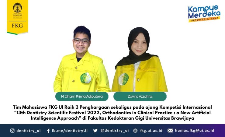 Tim Mahasiswa FKG UI Raih 3 Penghargaan sekaligus pada ajang Kompetisi Internasional “13th Dentistry Scientific Festival 2022, Orthodontics in Clinical Practice : a New Artificial Intelligence Approach” di Fakultas Kedokteran Gigi Universitas Brawijaya